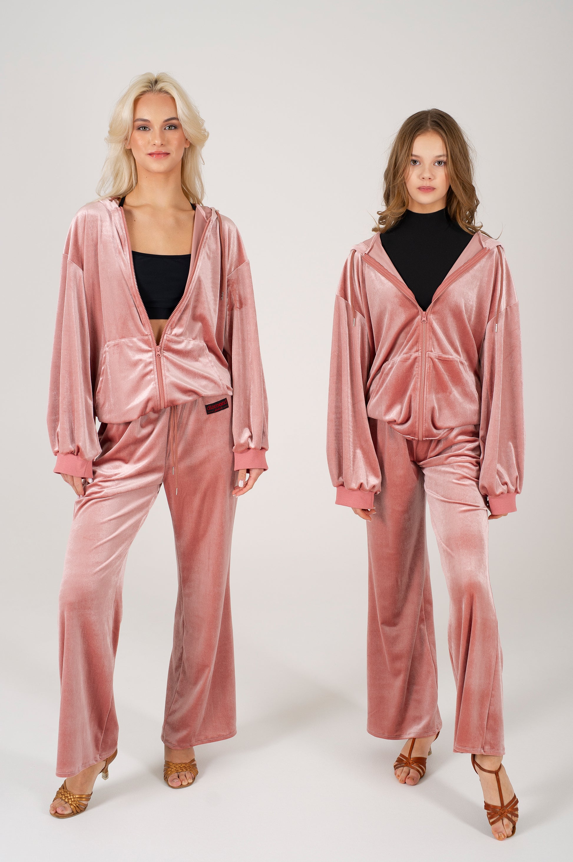 Satriecošs kostīms, var nēsāt gan pa mājām, gan pārbraucienos. Ļoti sievišķīgs, ar koķetīgu piegriezumu roku daļā. Izvēlejos Rose Gold toni, izskatās lieliski, audums neizsēžas un neburzās.